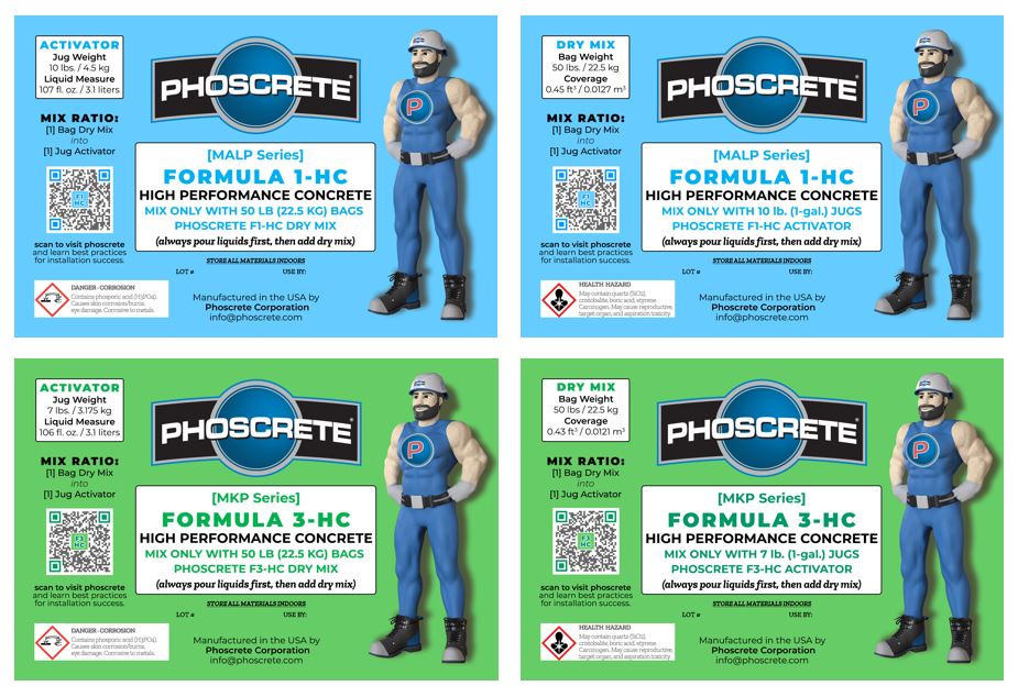 That’s why we decided to return to our roots and deliver all Phoscrete MPC Formulas using All-In-One (AIO) Liquid Activator jugs that mix 1:1 with our Dry Mix bags.